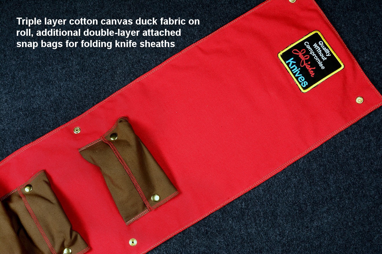Storing the knife long term in the sheath is a bad idea , and can damage the sheath as well as the knife (see the previous topic). Some metallic components of the knife can react with the leather, and possibly (in the presence of moisture) stain the leather, perhaps permanently. This is another reason that most of my knives are currently made with 304 austenitic stainless steel fittings, to limit all types of corrosion. Woods and other organics: brass, nickel silver, horn, bone, ivories and plastics all can have reactions with leather when the knife is stored long term in the sheath. Some loosening of the leather knife sheath may also occur when the knife is stored in it for a long time. Don't, ever, store the knife in plastic; the knife and sheath need to breath. That's why my heavy cotton denim drawstring bag is a great idea, it's dry and breathable. Still, the surrounding environment needs to be dry and not damp.