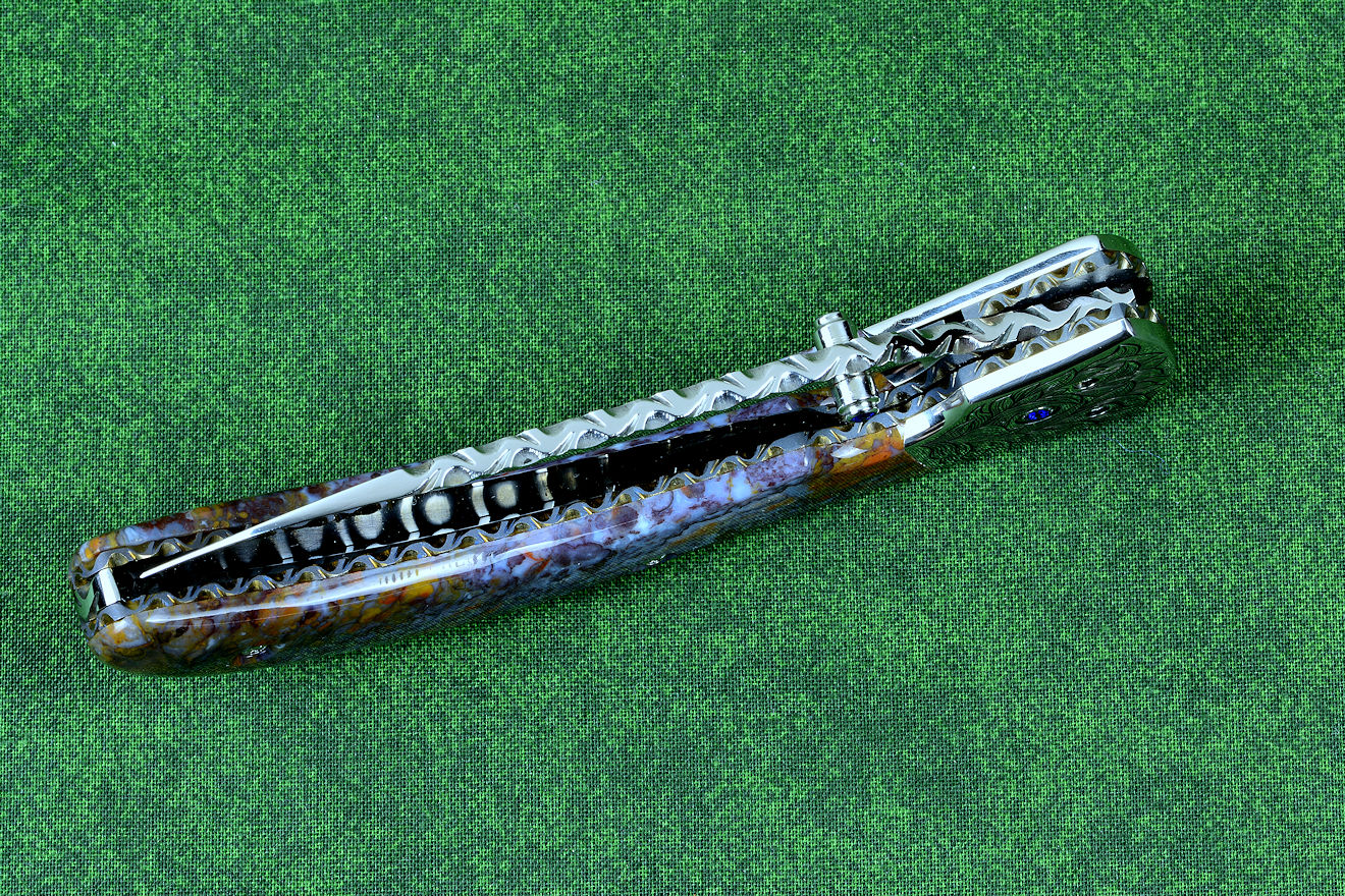 - Bolsters, Fittings: 304 Austenitic Stainless Steel, polished, hand-engraved